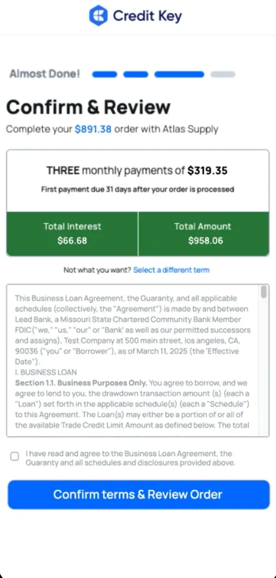 Say goodbye to lengthy approval processes and paperwork. Our streamlined B2B Net Terms and Pay Over Time solution offers a hassle-free experience.