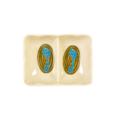 1-1/2 oz, 3-5/8" x 2-3/4" x 1-1/8", Divided Sauce Dish, Wei Dinnerware, Melamine, BPA Free, Dishwasher Safe, Break-Resistant, Shatter-Resistant, No Microwave, No Oven, NSF