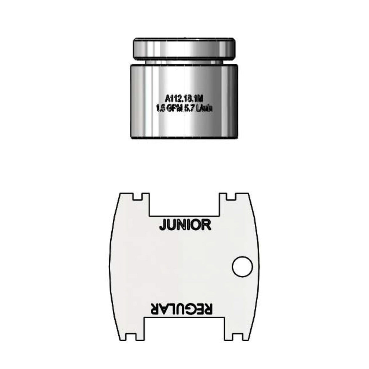 1.5 GPM vandal resistant aerator with polished chrome plated brass body and 13/16-24 UN female inlet. Certified to ASME A112.18.1/CSA B125.1, NSF 61-Section 9 and NSF 372.