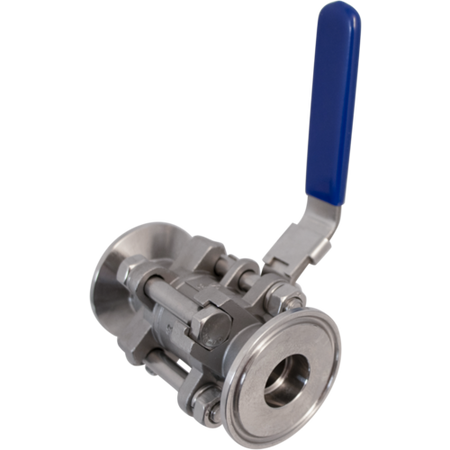 • Stainless steel 3-piece ball valve with tri-clamp connections.