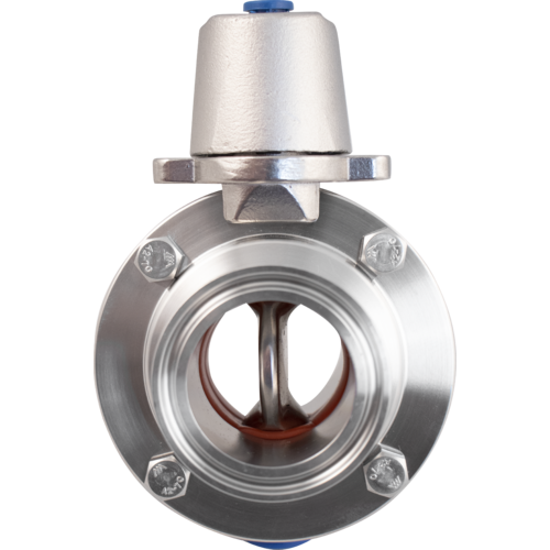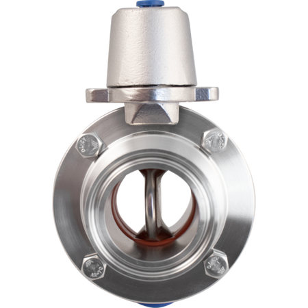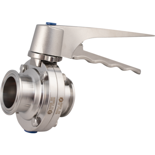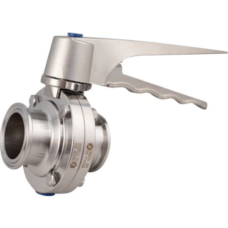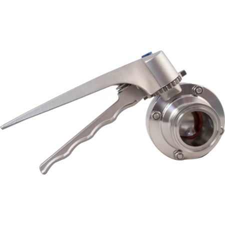 This 1.5" Tri-Clamp Butterfly Valve features stainless steel construction and 7-position handle. The stainless steel handle can be rotated 180° for right or left hand operation.