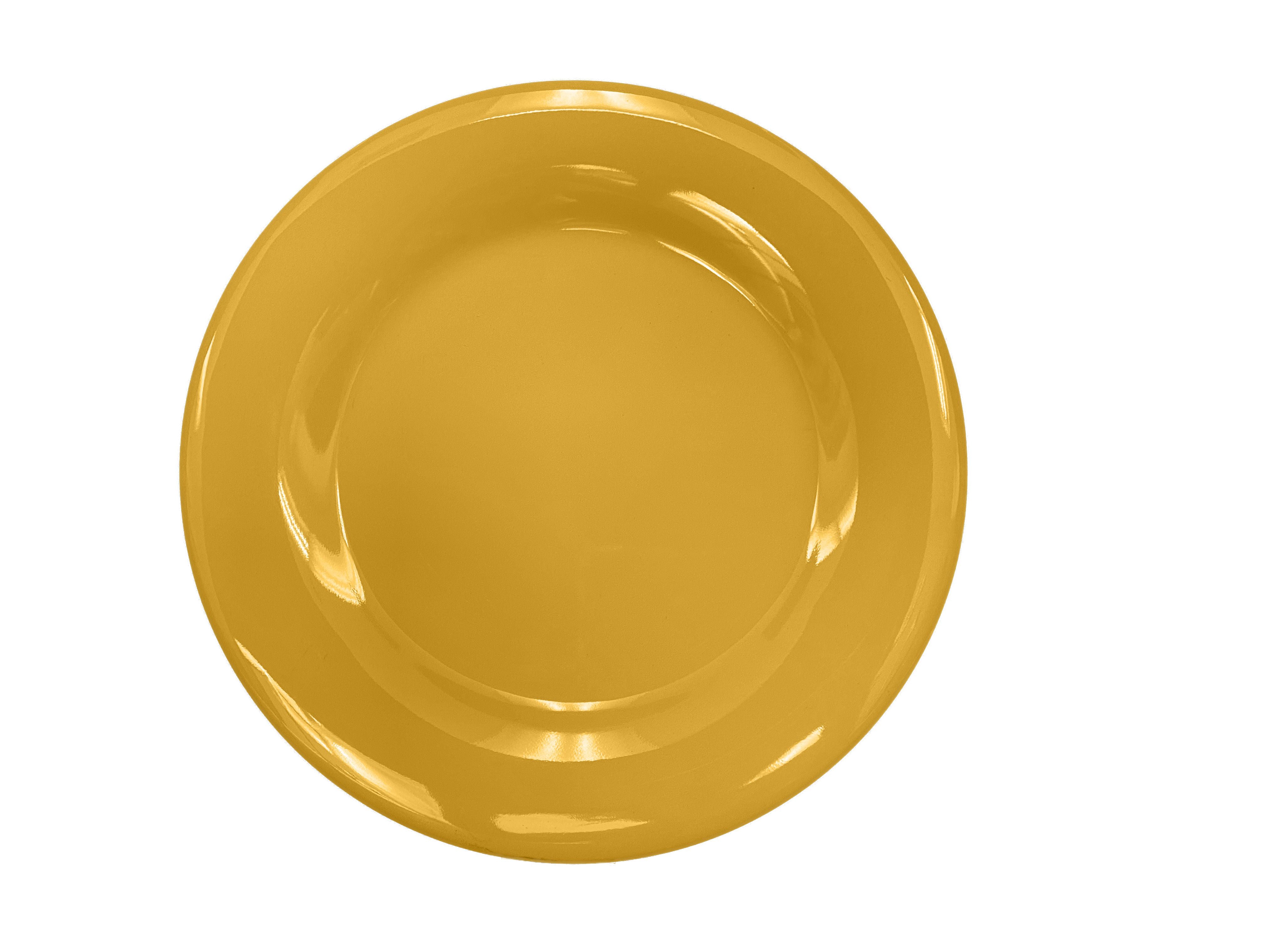 10-1/2" Diameter x 7/8" Height, Wide Rim Plate, Yellow Color, Melamine, BPA Free, Dishwasher Safe, Break-Resistant, Shatter-Resistant, No Microwave, No Oven, NSF