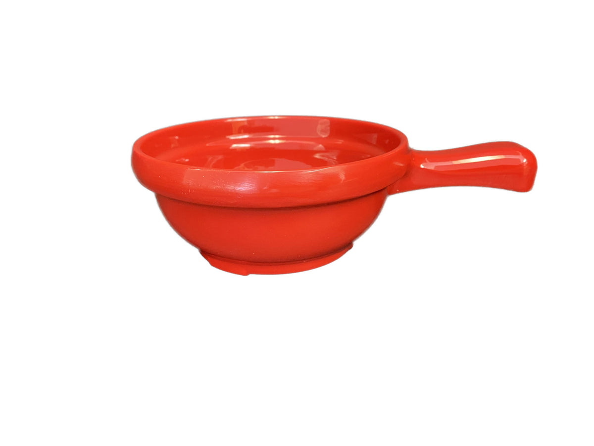 10 oz, 4-5/8" Diameter x 2" Height,, Soup Bowl with 2-1/8" Handle, Pure Red Color, Melamine, BPA Free, Dishwasher Safe, Break-Resistant, Shatter-Resistant, No Microwave, No Oven, NSF