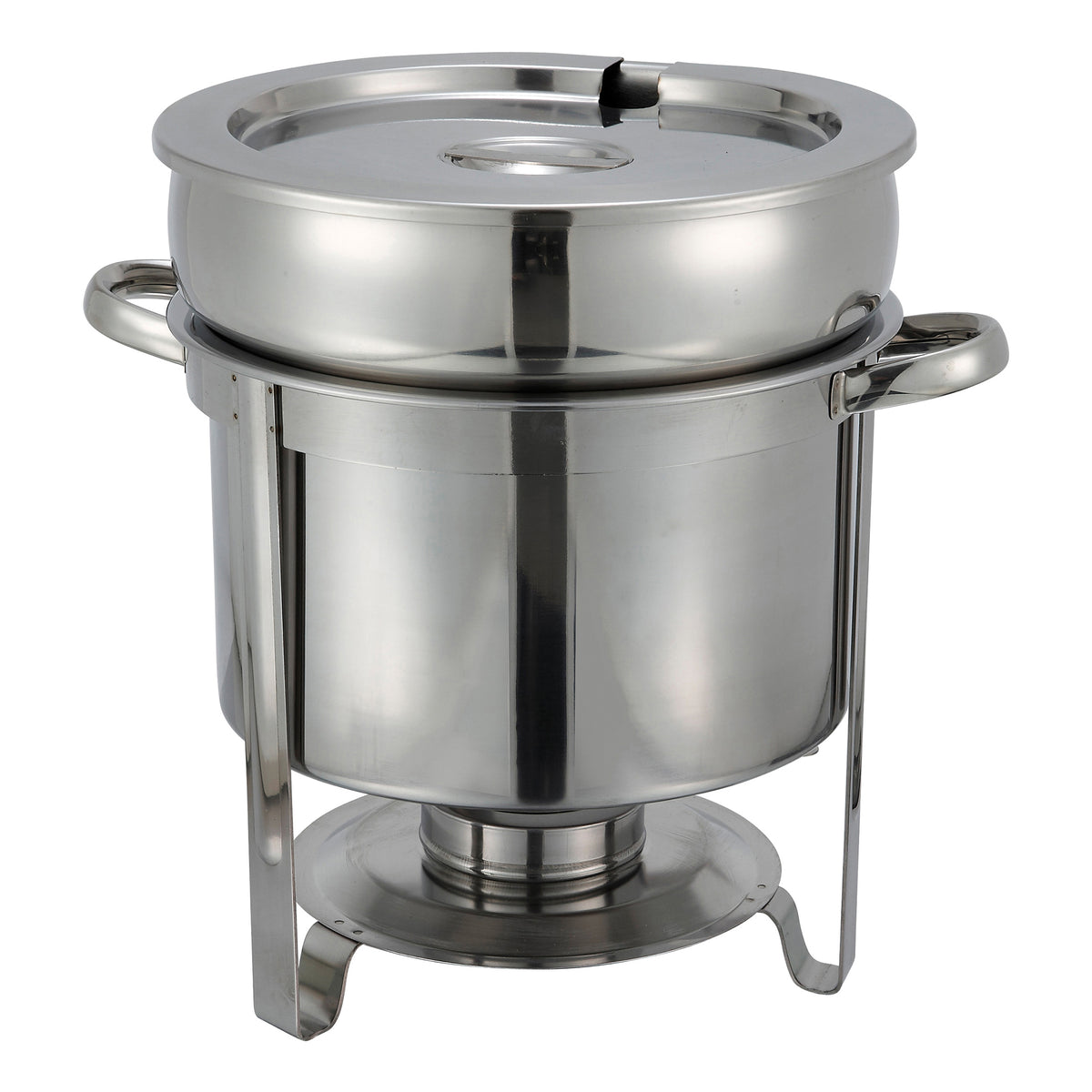 Enhance the look of a serving table with these stainless steel chafer-style soup warmers.