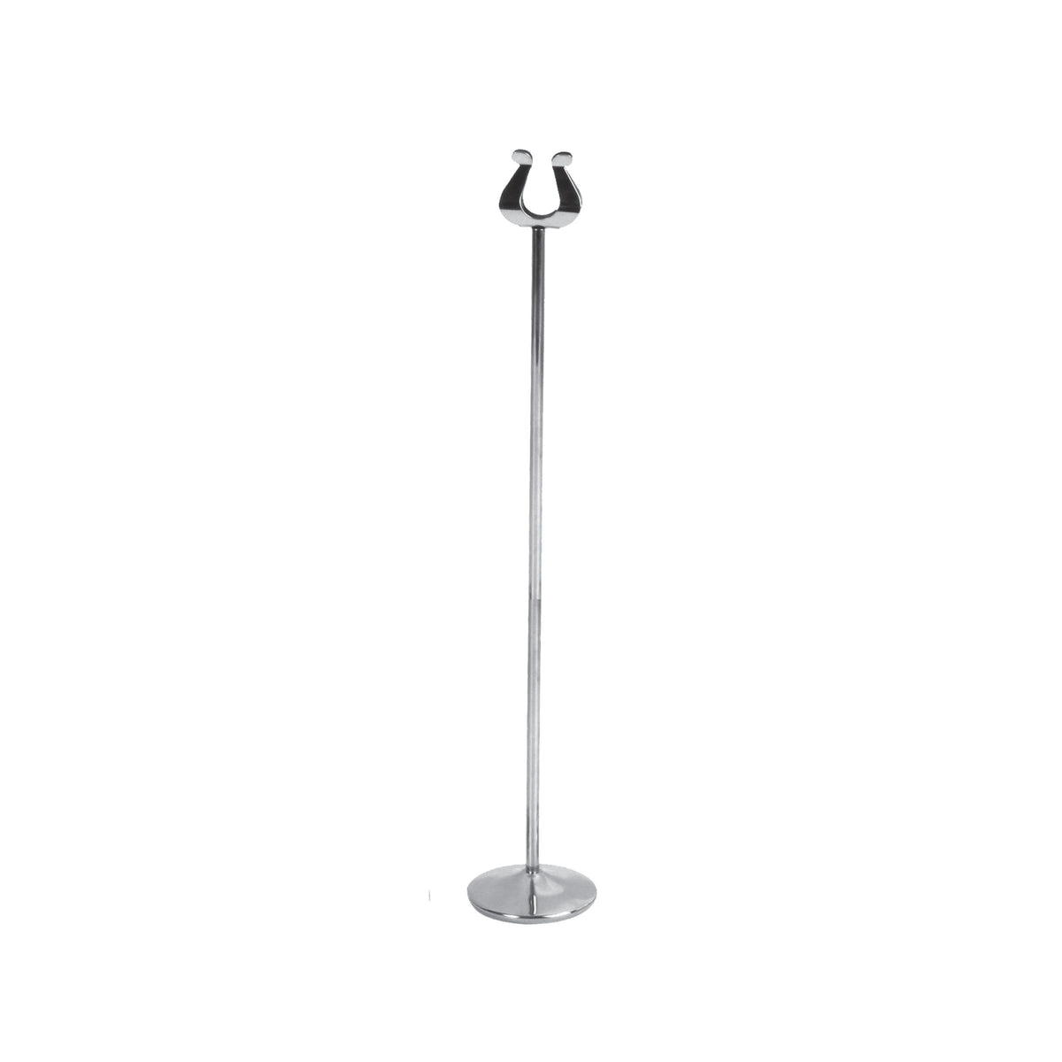 12" Overall Length, 3" Diameter Base, 9-5/8" Pole Length, 1-5/8" x 1-3/4" Clip, Table Card Stand, Stainless Steel, Heavy Base