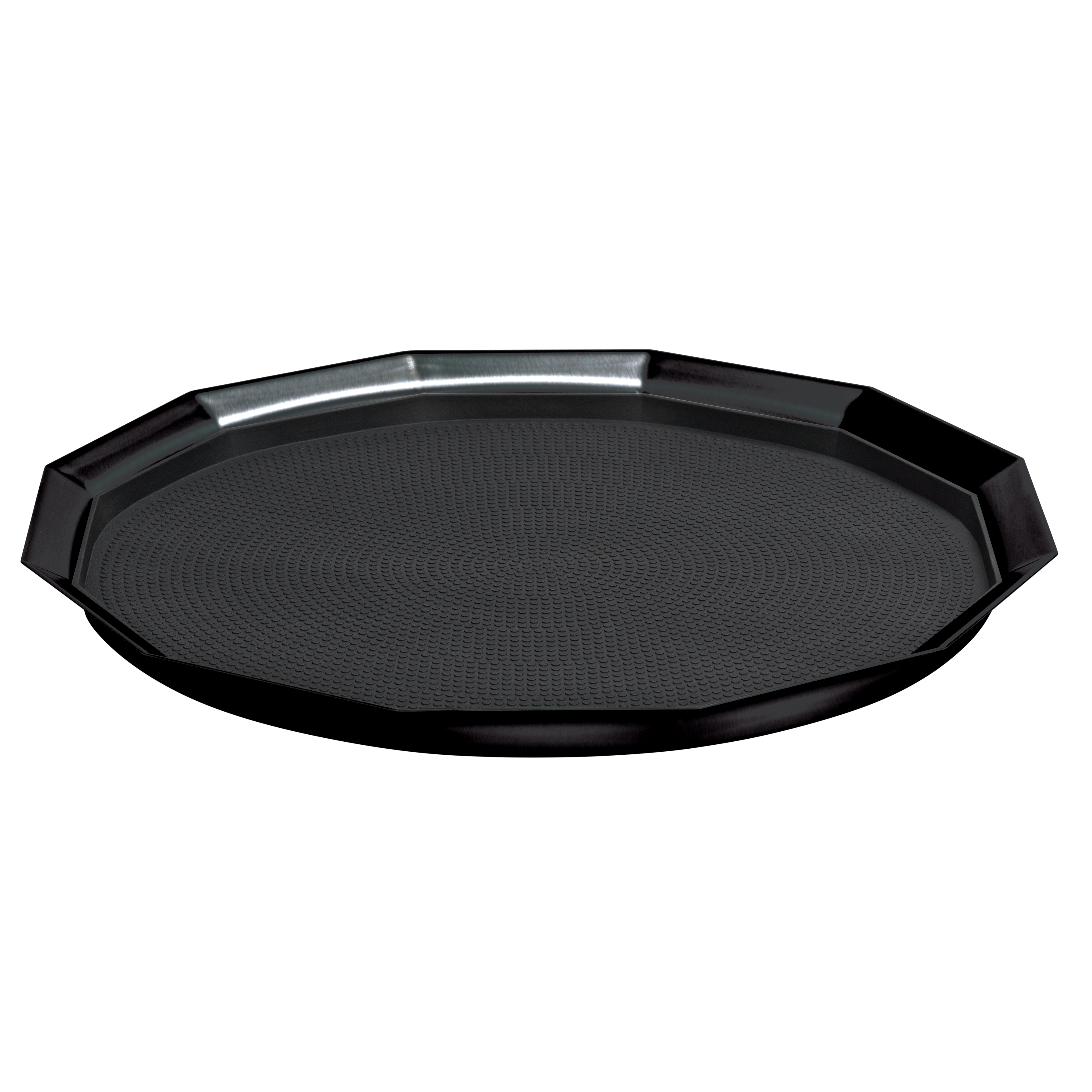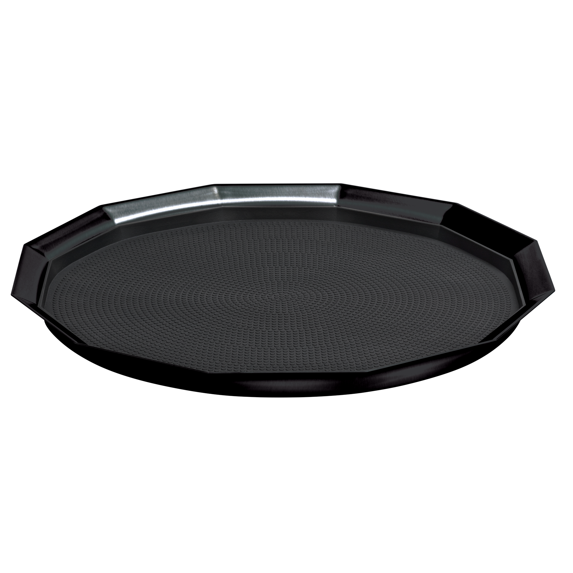 12-Sided 16 in. Large Non-Slip Serving Tray in Black Onyx