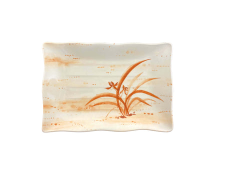13-1/2" x 9-1/8" x 1-3/8", Wavy Rectangular Plate, Gold Orchid Dinnerware, Melamine, BPA Free, Dishwasher Safe, Break-Resistant, Shatter-Resistant, No Microwave, No Oven, NSF