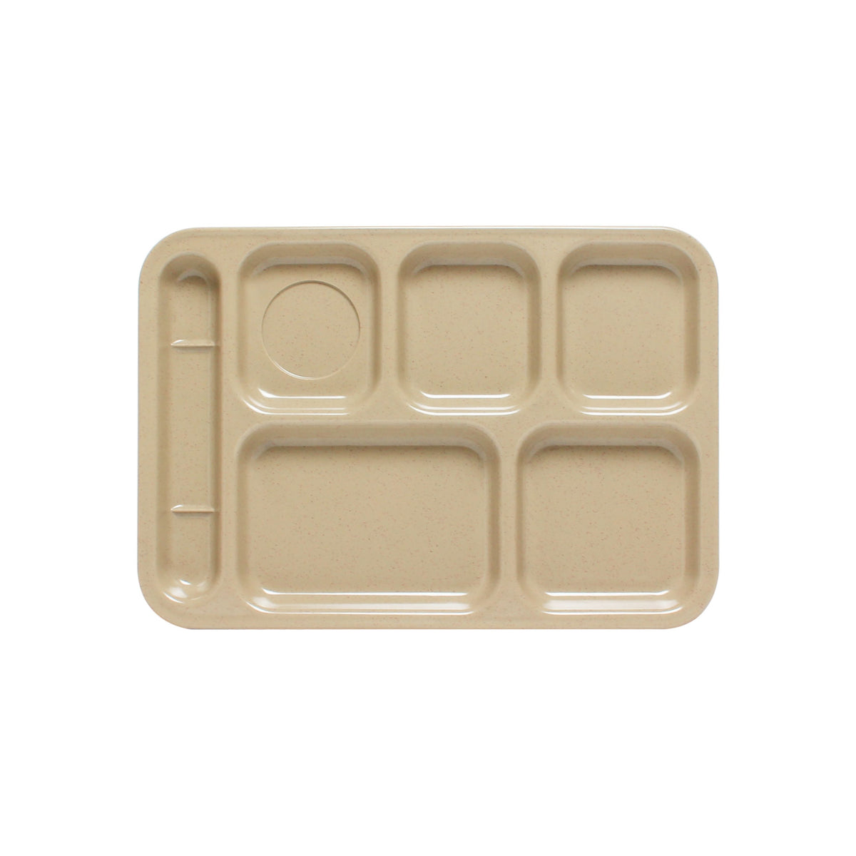 14-1/2" x 10" x 7/8", Left Hand 6 Compartment Tray, Sand Color, Melamine, BPA Free, Dishwasher Safe, Break-Resistant, Shatter-Resistant, No Microwave, No Oven, NSF