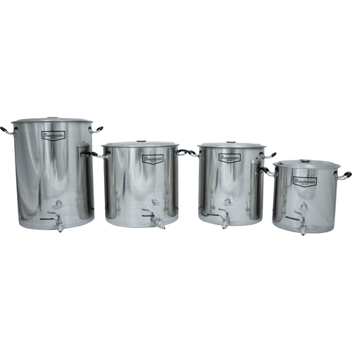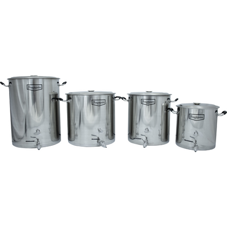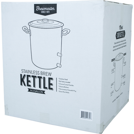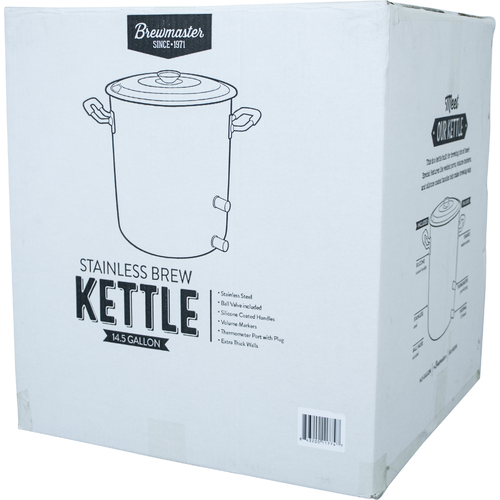 If you’re searching for a fully featured brew kettle but don't want to break the bank, the Brewmaster 14 Gallon Stainless Brew Kettle will certainly do the trick. Made of 100 percent stainless steel and available for a truly amazing price, this reliable brew kettle is perfect for first-time brewers and experienced home brewers alike. Two ½-inch couplers are welded to the side of the kettle, and the bottom coupler can even be threaded on the inside of the kettle to use with a diverter or a kettle tube screen.  These kettles are upgraded with Silicone Grip Handles and Stamped volume markers on the inside, making brew day that much easier.