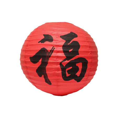 16" Diameter, Paper Lantern with "Fortune" word, Bamboo Frame with Paper Cover, Red Color
