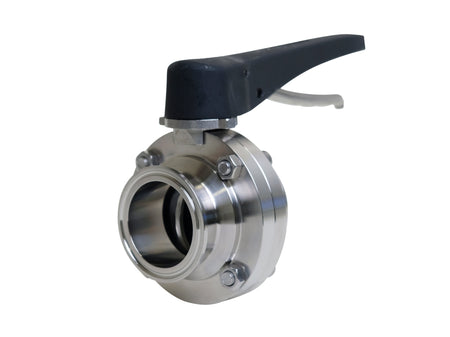 2" Clamp Butterfly Valve Black Plastic Trigger Handle - Silicone (BFVTC-TP) - T304 Stainless Steel - Wayland Industries - W4BFVTC-S-2-TP