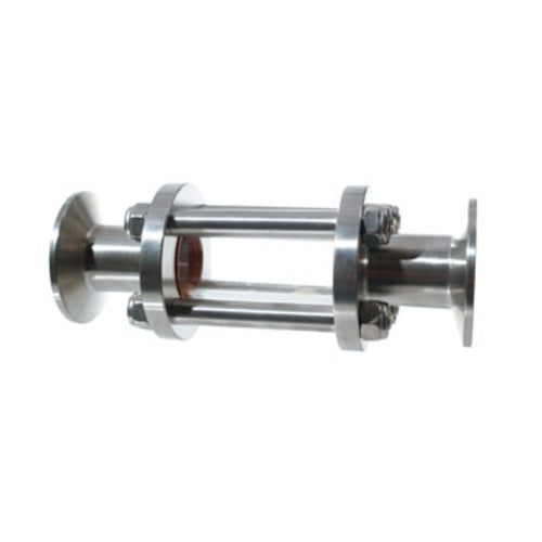 Made from 304-type stainless steel with 2in. clamp ends. Glass insert allows you to see flow. Silicone sight glass seat temperature rated to 390°F.