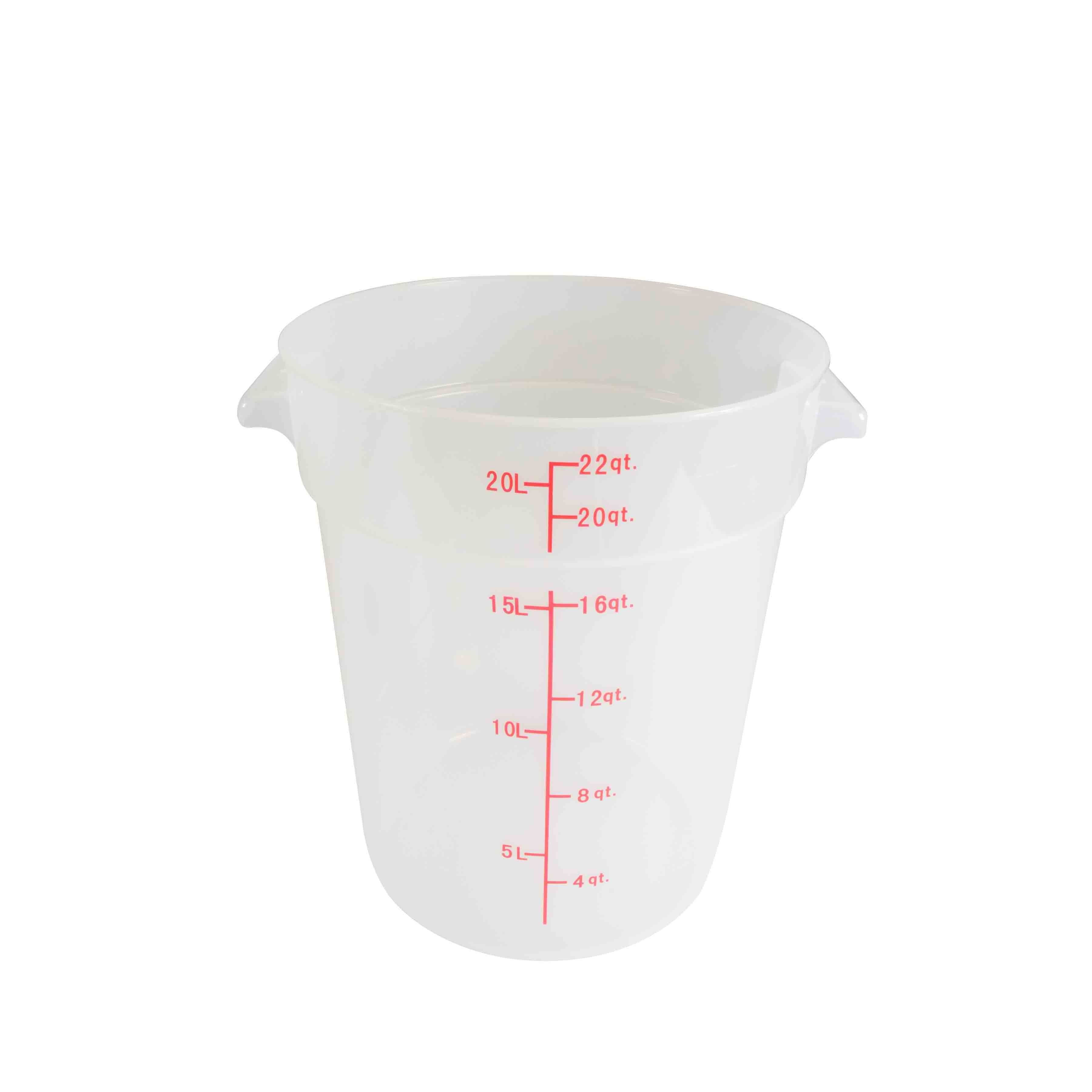 22 qt, 12-2/5" Diameter x 14-7/8" Height, Round Food Storage Container, Translucent, Polypropylene, withstand temperature from -40°F up to 160°F, Dishwasher Safe, No Microwave, No Oven, NSF