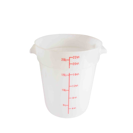 22 qt, 12-2/5" Diameter x 14-7/8" Height, Round Food Storage Container, White Color, Polypropylene, withstand temperature from -40°F up to 160°F, Dishwasher Safe, No Microwave, No Oven, NSF