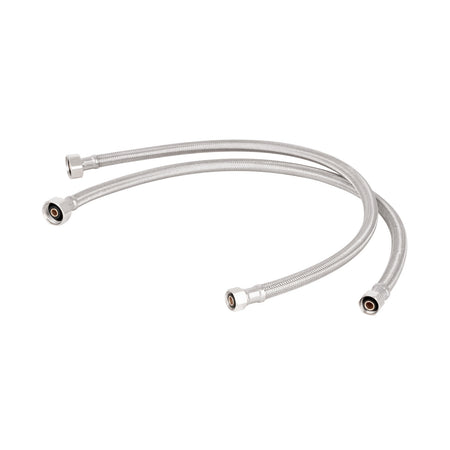 24" Flexible stainless steel supply hose with integral washer, 1/2" NPSM female outlet and 3/8" compression inlet. Includes set of (2) hoses. Certified to NSF 61-Section 9 and NSF 372.