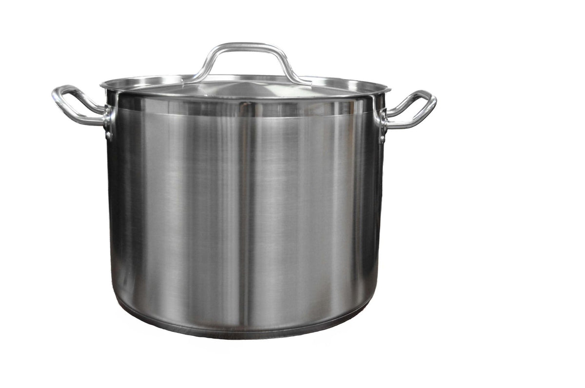 24 qt, 14" Diameter x 10-3/8" Height, 2-1/4" Welded Handle, Stock Pot with 14" Diameter x 5/8" Thickness Lid, Stainless Steel , Encapsulated Base, Dishwasher Safe, Standard Electric, Gas Cooktop, Halogen & Induction Ready, Oven Safe, Heavy-Duty, NSF