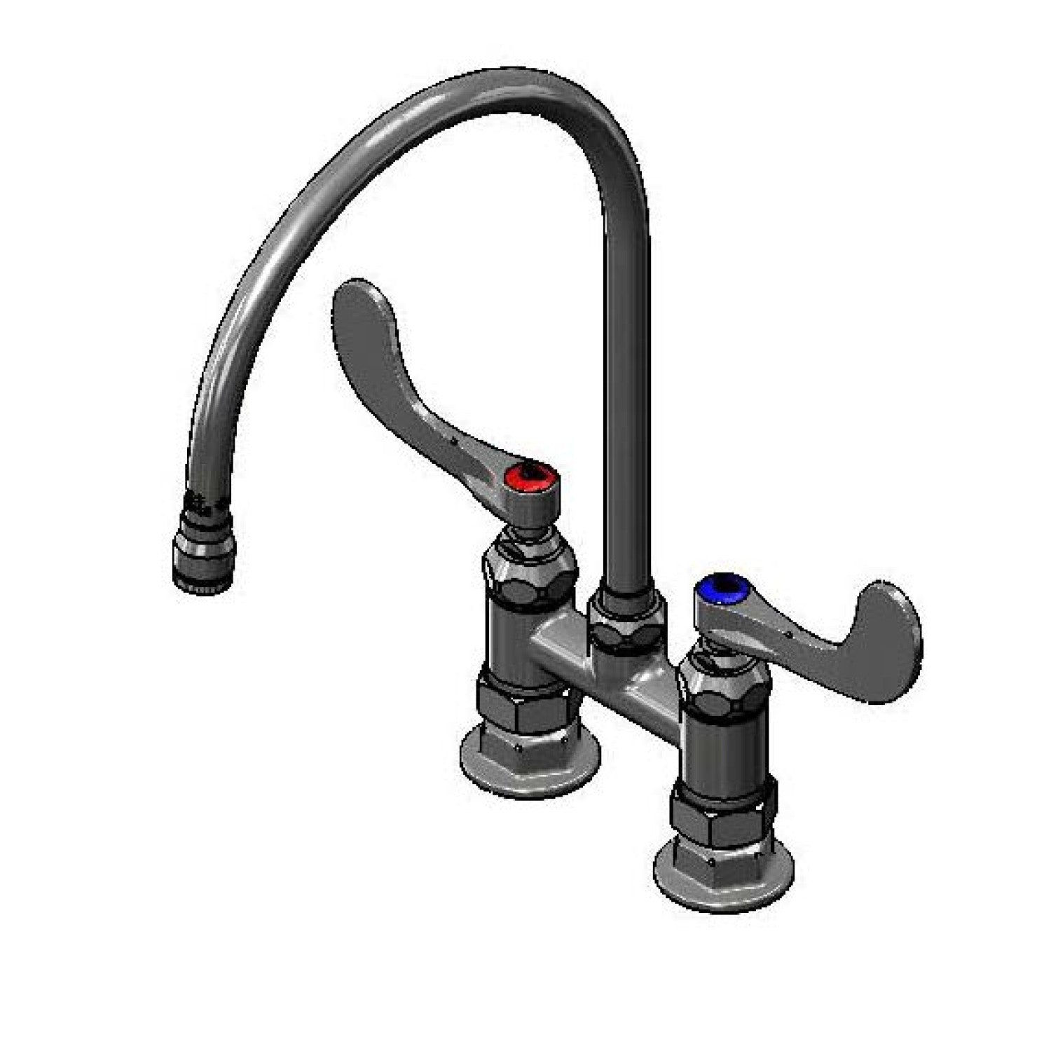 4" c/c DECK MOUNTED SURGICAL FAUCET, 135X GOOSENECK, 4" WRIST ACTION HANDLES