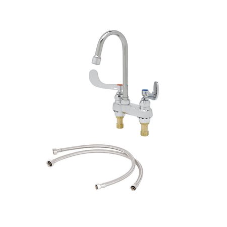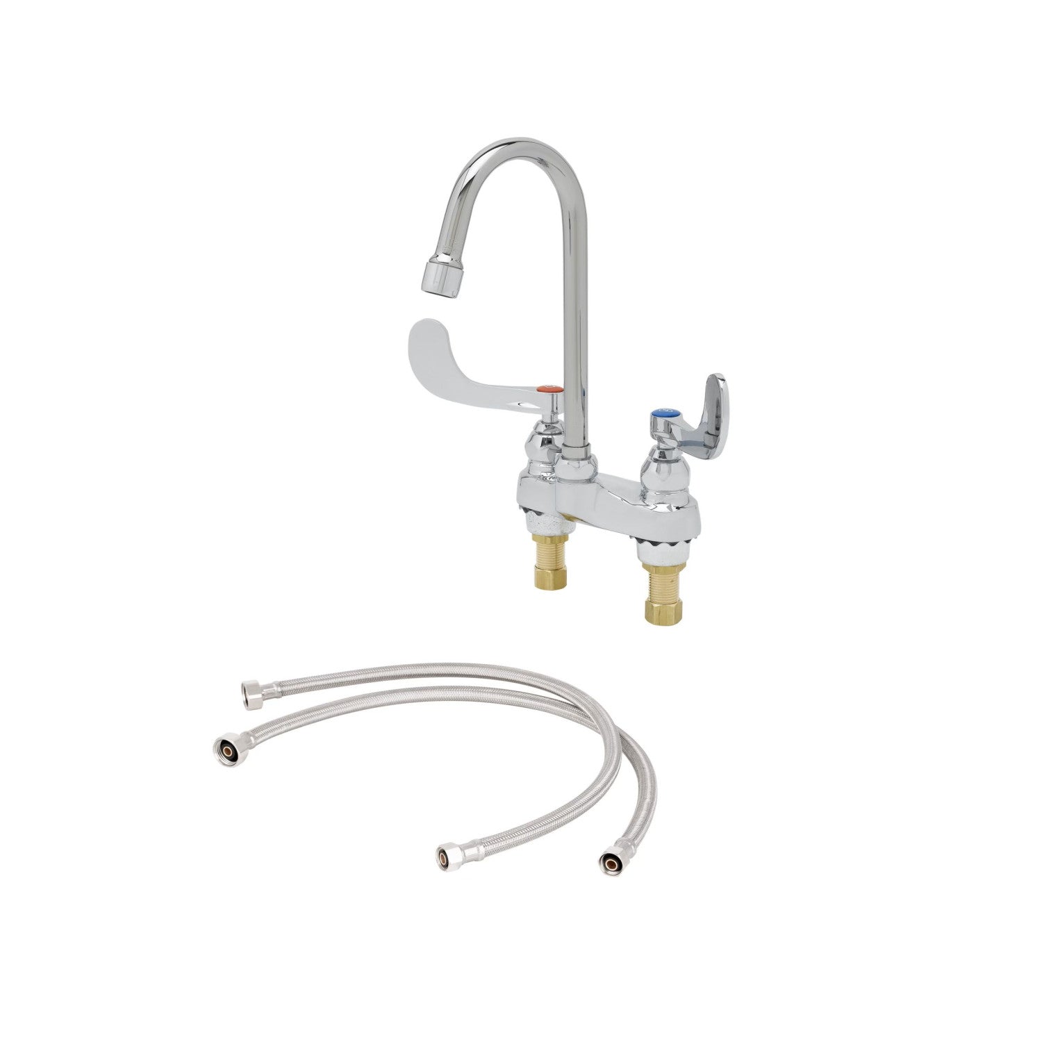 4" Centerset Deck Mount Mixing Faucet, Quarter-Turn Eterna Cartridges w/ Spring Checks, 4" Wrist Action Handles, 2 7/8" Swivel Gooseneck, 2.2 GPM Aerator & 1/2" NPSM Male Inlets, 24" Flexible Stainless Steel Ho