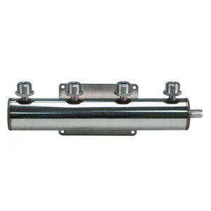 4 Way Beer Manifold distribute beer from serving vessel or keg to multiple stations. Mounts securely to wall.