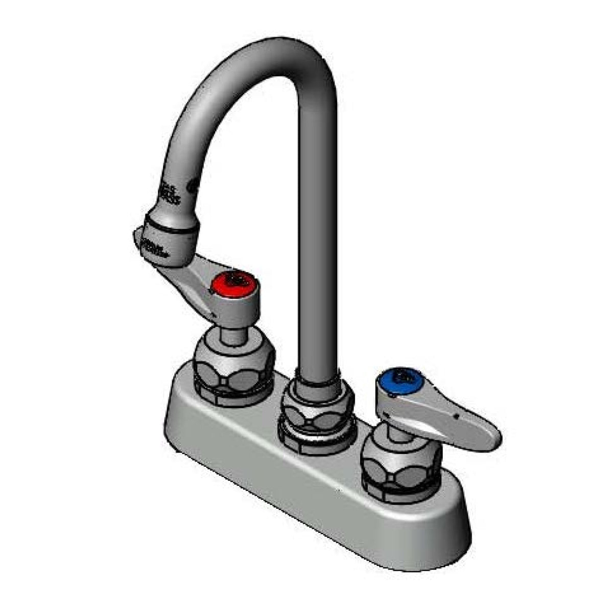 4" Workboard Faucet, Deck Mount, Ceramas, Swivel Gooseneck, 1.5 GPM, Lever Handles