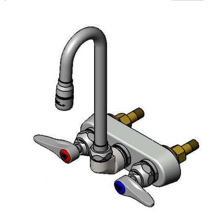 4" Workboard Faucet, Wall Mount, Qtr-Turn, Swivel Gooseneck, Lever Handles