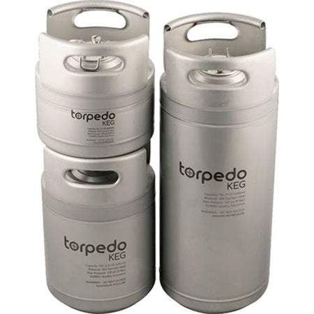 Set your sights on a brand new Torpedo Keg! The patented, D794,889, sleek all-stainless design represents a new era of homebrew kegs. With features like welded stainless handles, the ability to stack with fittings in place, amazing quality and a great price we think these kegs will become the standard by which other kegs are measured.
