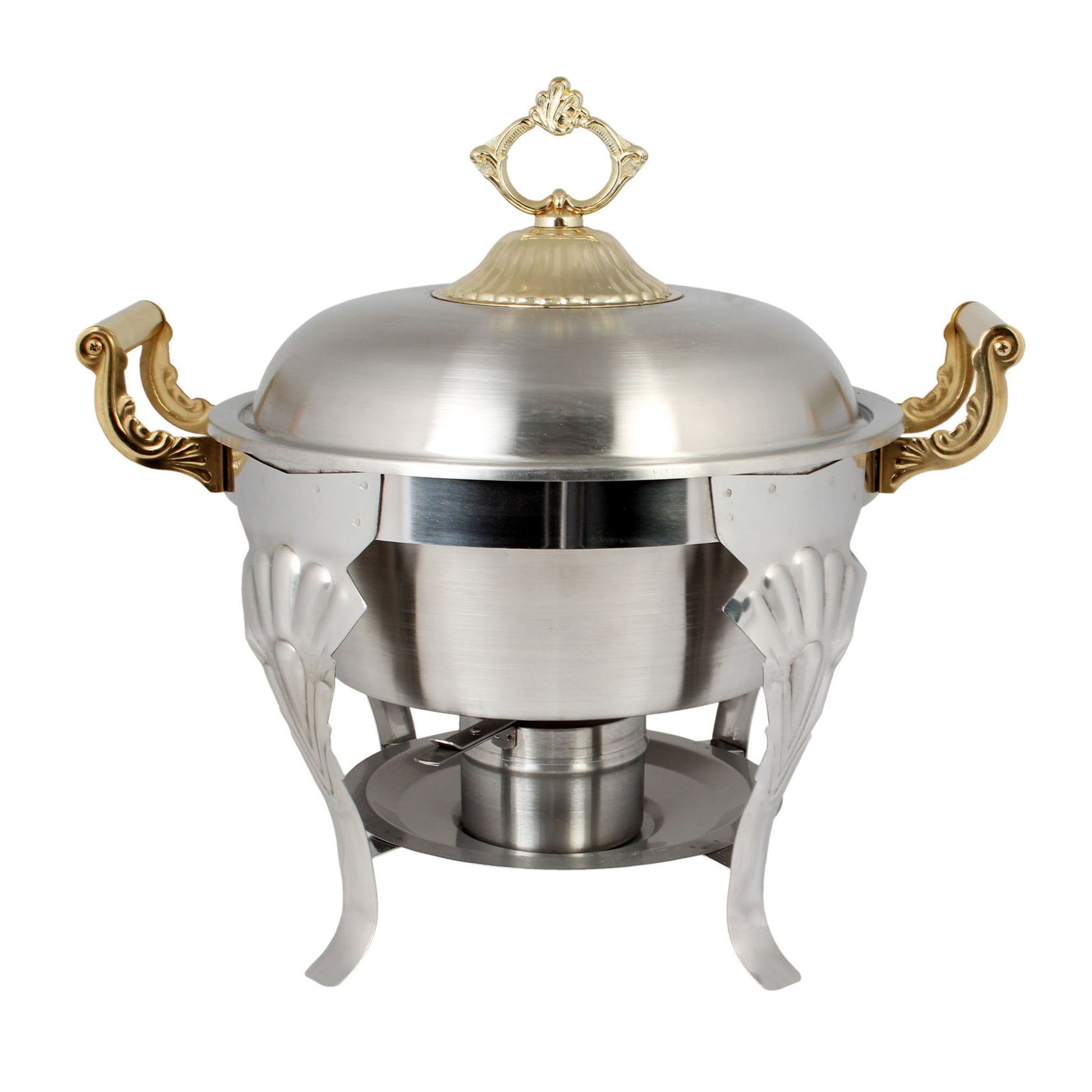 5 qt, 17-5/8" x 13" x 16-5/8", Half Size Round Chafer, Stainless Steel 18-8 with Brass Handles