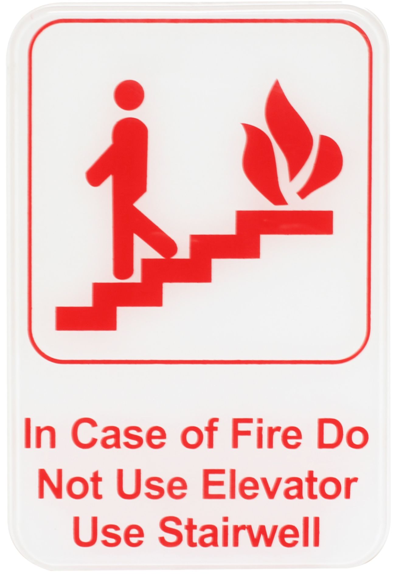 6" x 9" x 1/8", Information Sign with Symbol, In Case of Fire Do Not Use, Acrylonitrile Styrene, Easy Peel Self-Adhesive