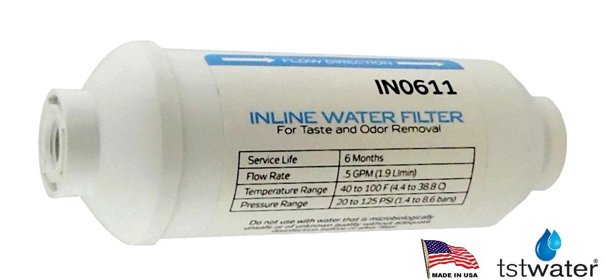 TSTWATER® In-Line Water Filtration CartridgesTSTWATER® GAC Filters (Taste/Odo r/Chlorine Removal) provides clarified drinking water.6” Coco GACRemoves ch lorine bad tastes odors dirt & rustOutlets: 1/4" FTP inlet and outletTem perature Range: 40-100°FPressure Range: 20-125 PSIApprox. Life: 6 months Capacity: 500 GallonsMade in the USATST In line filters are constr ucted from the highest quality coconut shell GAC and specially selected plastics to give our custome rs some of the best performing filters in the industry. Also available with phosphates to aid in the control of scale and lime deposits.