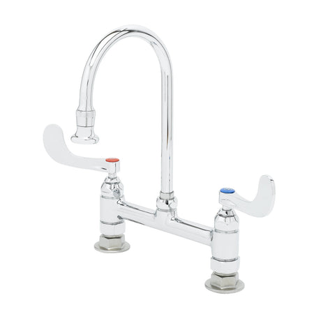 8" Deck Mount Mixing Faucet, Swivel/Rigid Gooseneck w/2.2 GPM Rosespray, 4" Wrist Handles