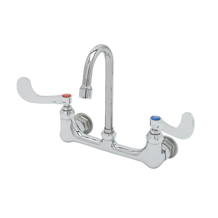 8" Double Pantry Faucet, Wall Mount, Eternas, Gooseneck, 1.5 GPM Aerator, 4" Wrist Handles