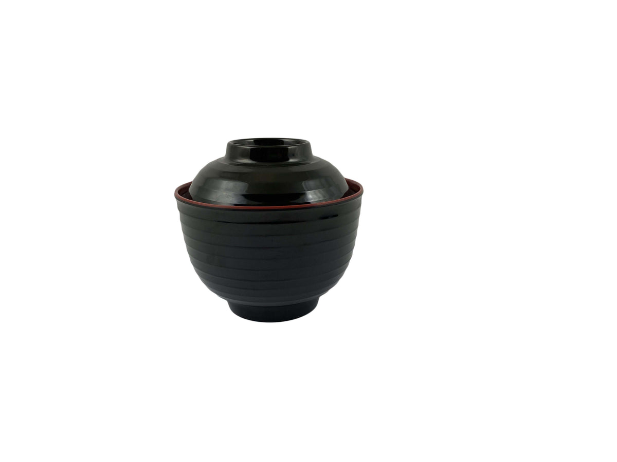 8 oz, Bowl: 4" Diameter x 2-3/4" Height, Lid: 3-5/8" Diameter x 1-1/4" Height, Overall Height: 4", Soup Vegetable Bowl, Two Tone (Black & Red), Melamine, BPA Free, Dishwasher Safe, Break-Resistant, Shatter-Resistant, No Microwave, No Oven, NSF