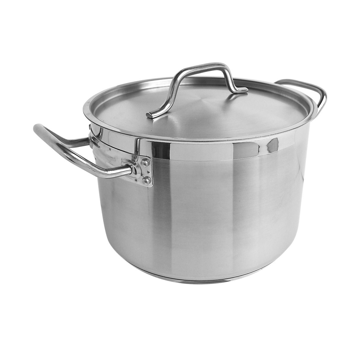 8 qt, 10" Diameter x 6-5/8" Height, 2-1/2" Welded Handle, Stock Pot with 10" Diameter x 1/2" Thickness Lid , Stainless Steel , Encapsulated Base, Dishwasher Safe, Standard Electric, Gas Cooktop, Halogen & Induction Ready, Oven Safe, Heavy-Duty, NSF