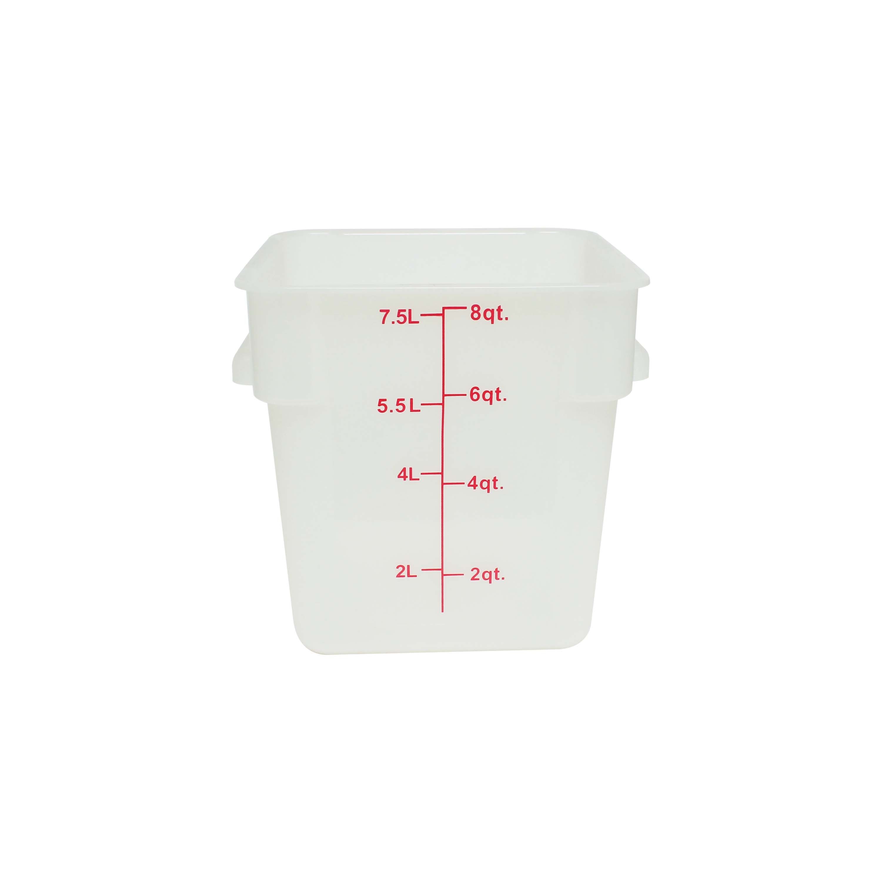 8 qt, 8-7/8" x 8-6/7" x 9", Square Food Storage Container, Translucent, Polypropylene, withstand temperature from -40°F up to 160°F, Dishwasher Safe, No Microwave, No Oven, NSF