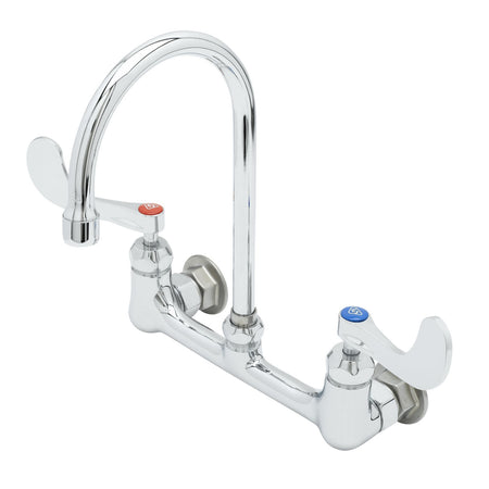8" Wall Mount Faucet, Ceramas, 4" Handles, Swivel Gooseneck, 2.2 GPM Laminar Outlet Device