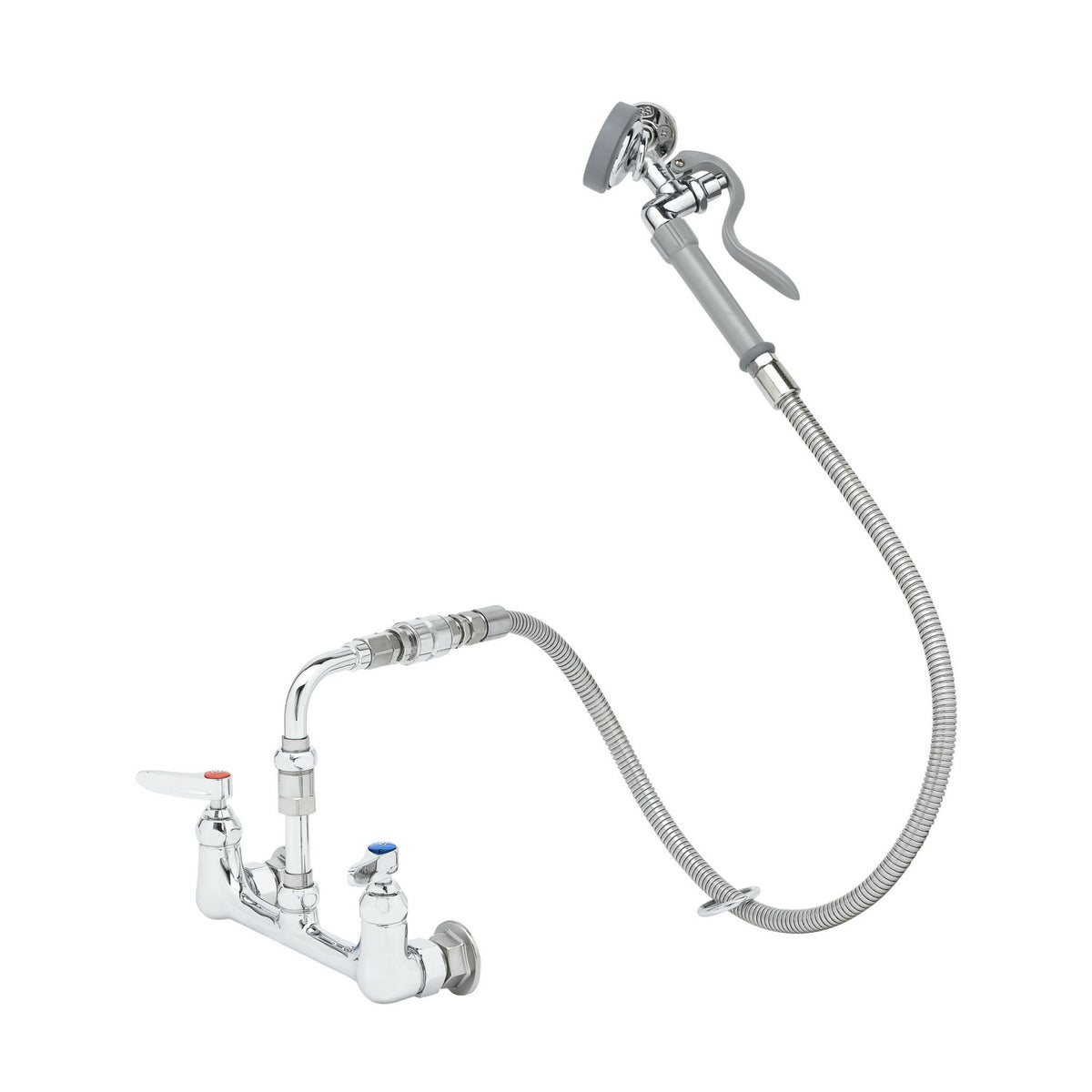 8" Wall Mount Faucet, Vacuum Breaker, 44" S'Steel Hose, B-0107-035 Spray Valve ( Huddle House )