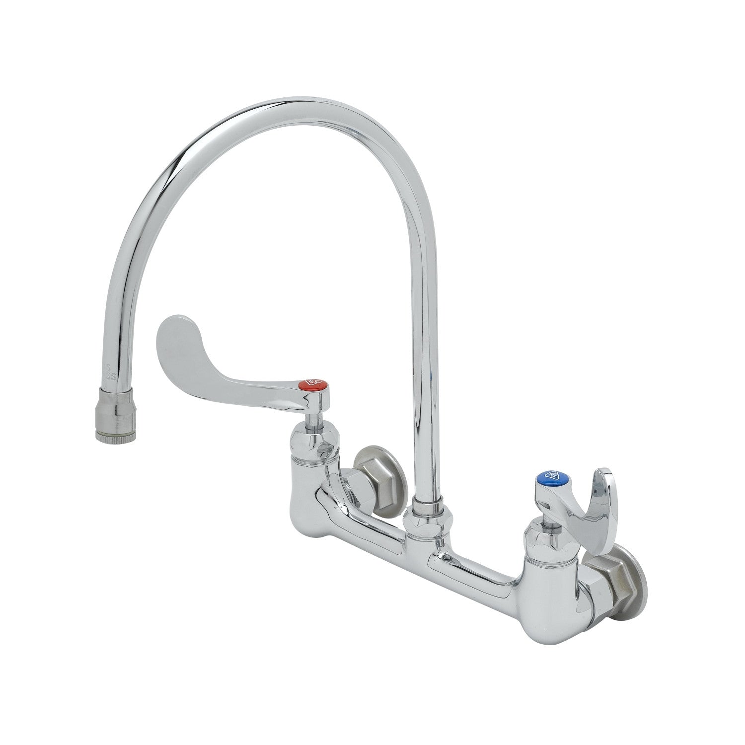8" Wall Mount Mixing Faucet, Eterna Cartridges, 4" Wrist Action Handles & Swivel Gooseneck