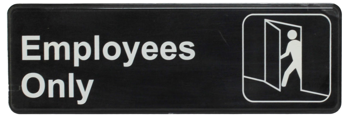 9" x 3" x 1/8", Information Sign with Symbol, Employees Only, Acrylonitrile Styrene, Easy Peel Self-Adhesive