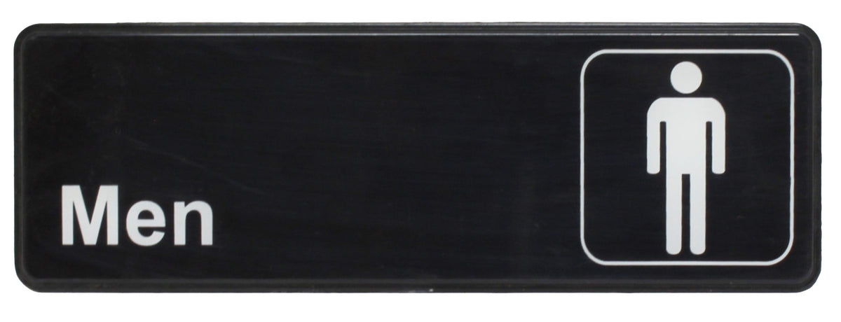 9" x 3" x 1/8", Information Sign with Symbol, Men, Acrylonitrile Styrene, Easy Peel Self-Adhesive