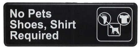 9" x 3" x 1/8", Information Sign with Symbol, No Pets/Shoes, Shirt Required, Acrylonitrile Styrene, Easy Peel Self-Adhesive