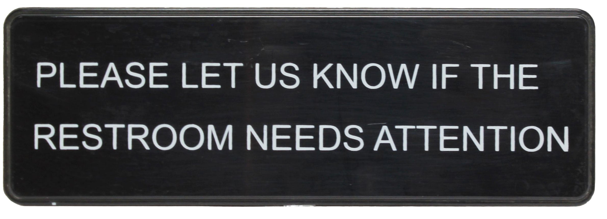 9" x 3" x 1/8", Information Sign with Symbol, Please Let Us Know If the Restroom Needs Attention, Acrylonitrile Styrene, Easy Peel Self-Adhesive