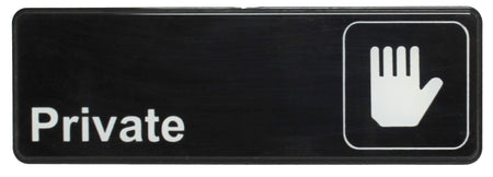 9" x 3" x 1/8", Information Sign with Symbol, Private, Acrylonitrile Styrene, Easy Peel Self-Adhesive