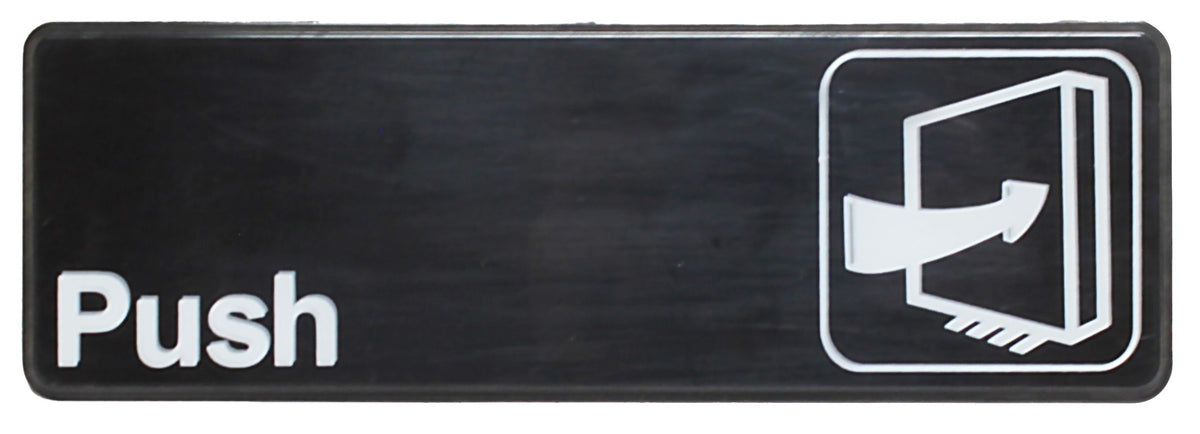 9" x 3" x 1/8", Information Sign with Symbol, Push, Acrylonitrile Styrene, Easy Peel Self-Adhesive
