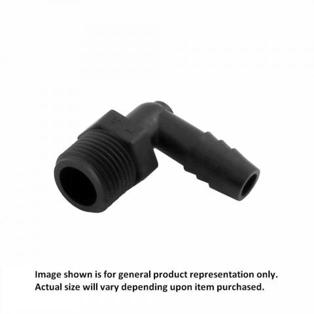 Poly and Nylon Plastic FittingsPipe Thread FittingsPipe Hose Stem ElbowSize: 1/4" MPT x 3/8" B