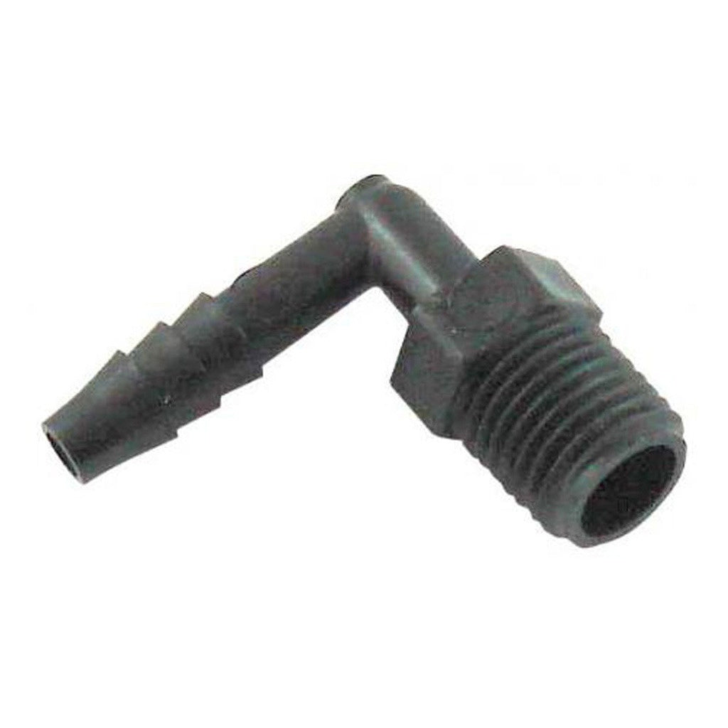 Poly and Nylon Plastic FittingsPipe Thread FittingsPipe Hose Stem ElbowSize: 3/4" MPT x 1/2" B