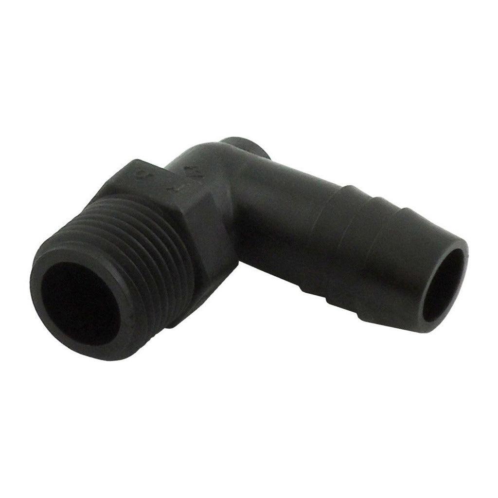 Poly and Nylon Plastic FittingsPipe Thread FittingsPipe Hose Stem ElbowSize: 1/2" B x 3/8" MPT