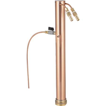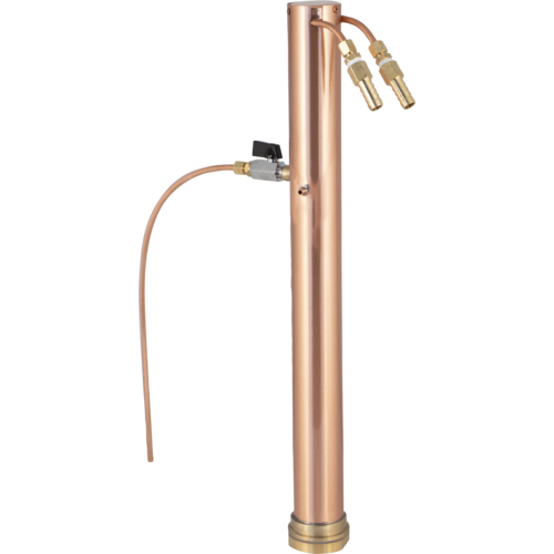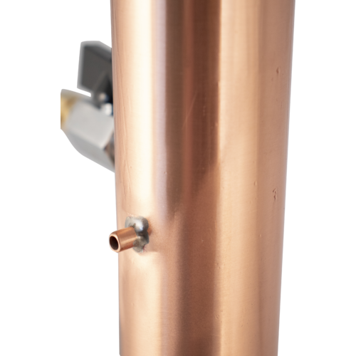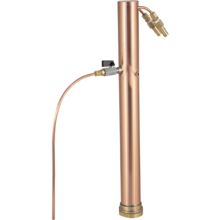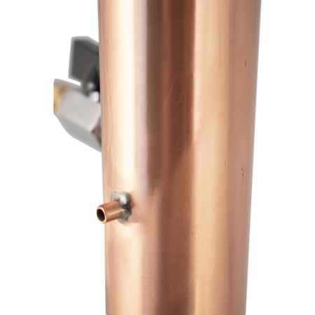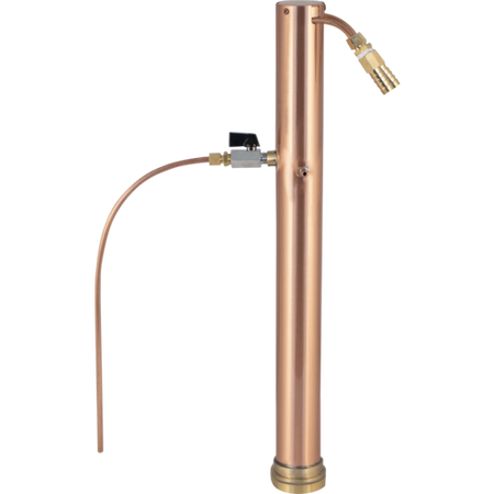 The Copper Reflux Still Condenser is designed to create high percentage pure neutral spirit.  It features a flow management device, which makes it extremely easy to use. No need to worry about fine tuning the water flow speed. As long as your providing enough coolant or cold water running through the condenser, the flow rate doesn't matter. The purity of the spirit can be controlled by two included flow control inserts. These brass inserts come with a 1.0mm hole and 0.6mm hole. As the hole gets smaller, the rate at which the spirit exits the condenser will decrease, thus increasing your reflux ratio and the purity of your spirit.