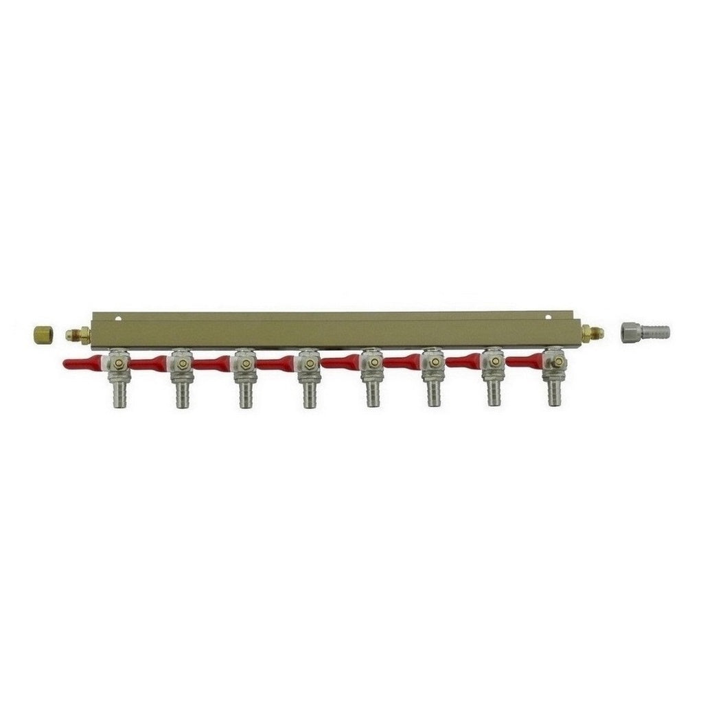 Aluminum Air Dist 8-Out 3/8inB-Shutoff With Chk