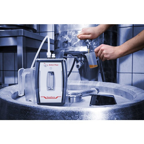Anton Paar is a leading producer of analytical testing equipment for commercial breweries. Borrowing some technology from their high end machines, the EasyDens digital gravity/alcohol tester is designed for savvy home brewers and small commercial breweries.  It is a precision gravity/density testing unit which can accurately read gravity with a tiny 2 ml sample at any point in the brewing process.  Alcohol % can also be tracked at any point during fermentation. The unit hooks up to your smartphone via Bluetooth and stores various fermentation "profiles" enabling you to track fermentation progress, alcohol levels, and help know when it's time to keg & drink your beer!