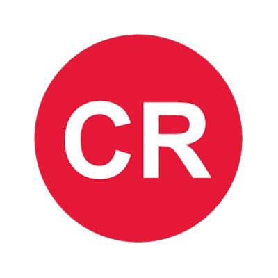 Button cap, round CR red cap with white lettering. Can be used on a Taprite or Wunder-Bar™ bargun.